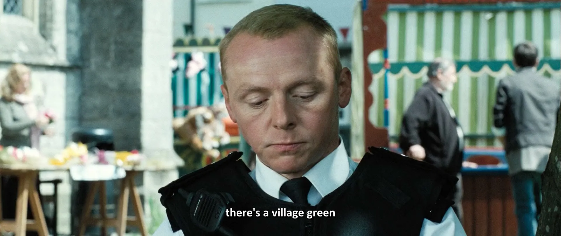 Cast: Simon Pegg as Nicholas Angel, Nick Frost as PC Danny Butterman, Jim Broadbent as Inspector Frank Butterman, Paddy Considine as DS Andy Wainwright, Rafe Spall as DC Andy Cartwright, Kevin Eldon as Sergeant Tony Fisher, Olivia Colman as PC Doris Thatcher, Bill Bailey as Sergeant Turner, Karl Johnson as PC Bob Walker, Timothy Dalton as Simon Skinner, Edward Woodward as Tom Weaver, Billie Whitelaw as Joyce Cooper, Eric Mason as Bernard Cooper, Stuart Wilson as Dr. Robin Hatcher, Paul Freeman as Rev. Philip Shooter, Rory McCann as Michael "Lurch" Armstrong, Kenneth Cranham as James Reaper, Maria Charles as Mrs. Reaper, Peter Wight as Roy Porter, Julia Deakin as Mary Porter, Trevor Nichols as Greg Prosser, Elizabeth Elvin as Sheree Prosser, Patricia Franklin as Annette Roper, Lorraine Hilton as Amanda Paver, Tim Barlow as Mr. Treacher, Anne Reid as Leslie Tiller, Ben McKay as Peter Cocker, Adam Buxton as Tim Messenger, David Threlfall as Martin Blower, Lucy Punch as Eve Draper, David Bradley as Arthur Webley, Ron Cook as George Merchant, Stephen Merchant as Peter Ian Staker, Alice Lowe as Tina, Martin Freeman as Met Sergeant, Steve Coogan as Metropolitan Police Inspector, Bill Nighy as Met Chief Inspector, Peter Jackson as Thief Dressed as Father Christmas (uncredited), Cate Blanchett as Janine (uncredited), Garth Jennings as Crack Addict (uncredited), Edgar Wright as Shelf Stacker / Voice of Dave (uncredited), Robert Popper as 'Not' Janine, Joe Cornish as Bob, Chris Waitt as Dave, Colin Michael Carmichael as Heston Services Clerk, Graham Low as The Living Statue